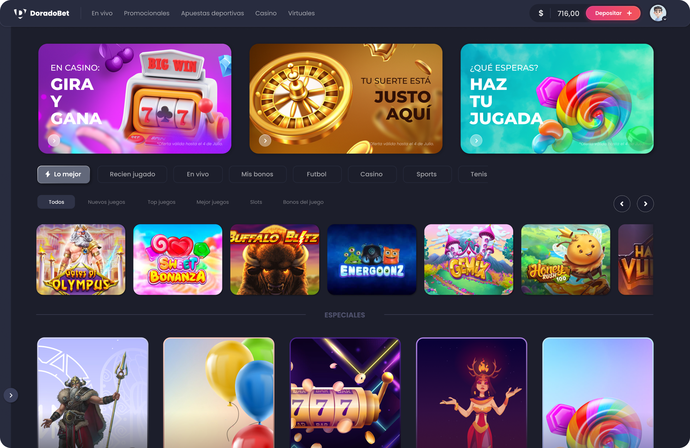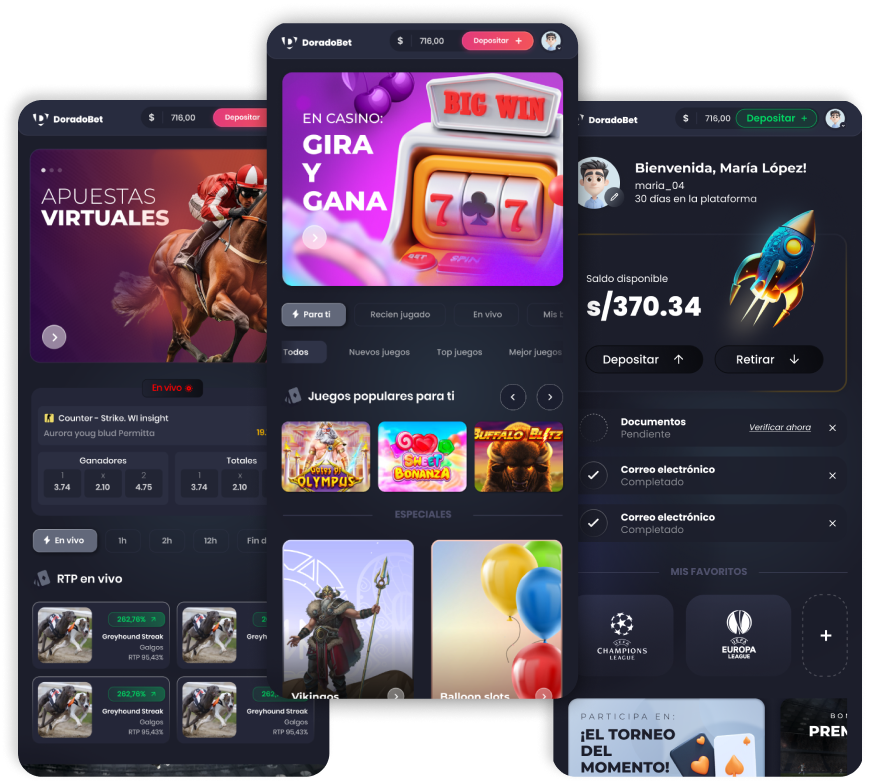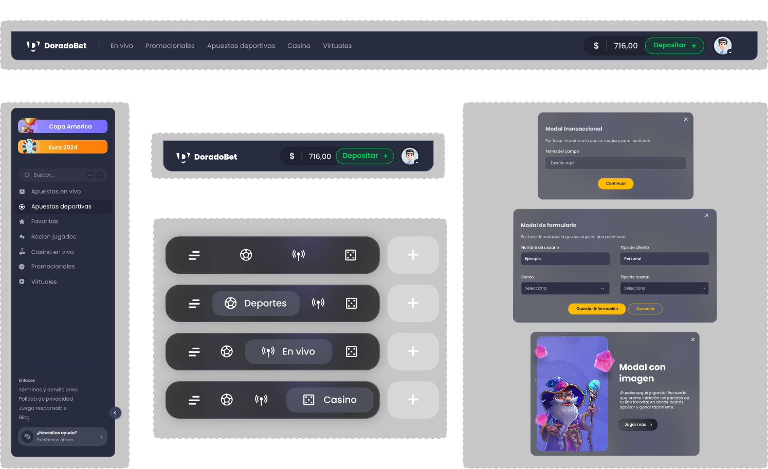 Reto: Crear un sistema de diseño y rediseñar la interfaz completa de la plataforma Doradobet, adaptándola a un enfoque mobile first y estableciendo un lenguaje común entre diseño y desarrollo.